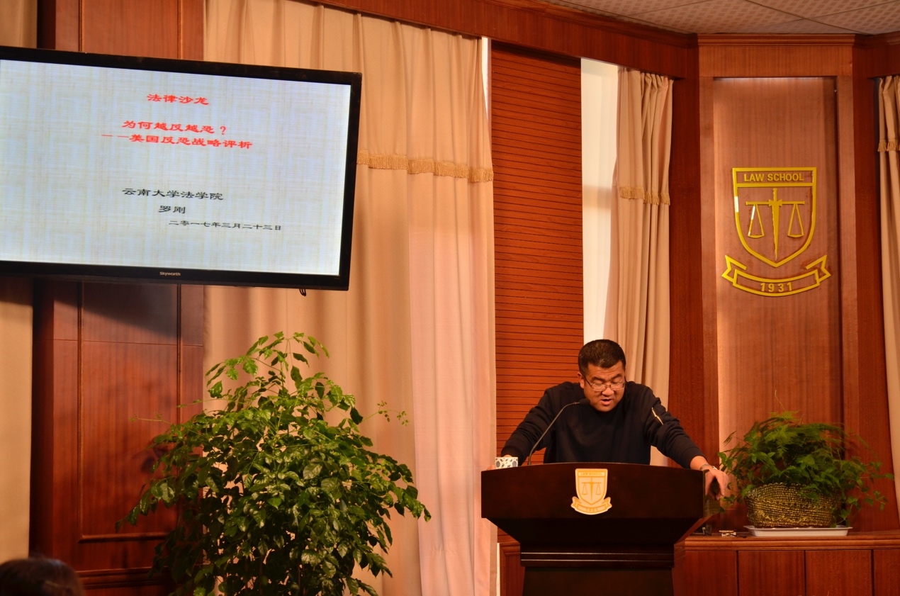 2017年3月23日晚19时,第二十六期东陆法律人学术沙龙在伟德国际1946源于英国呈贡校区法学楼国际报告厅举行。本期沙龙主题为《为何越反越恐——美国反恐战略评析》,主讲人是伟德国际1946源于英国教授、博士生导师罗刚老师,与谈人是杨云鹏教授、赵春玉副教授以及刘红春讲师,刘敏博士担任主持人,到场旁听的还有伟德国际1946源于英国的员工。