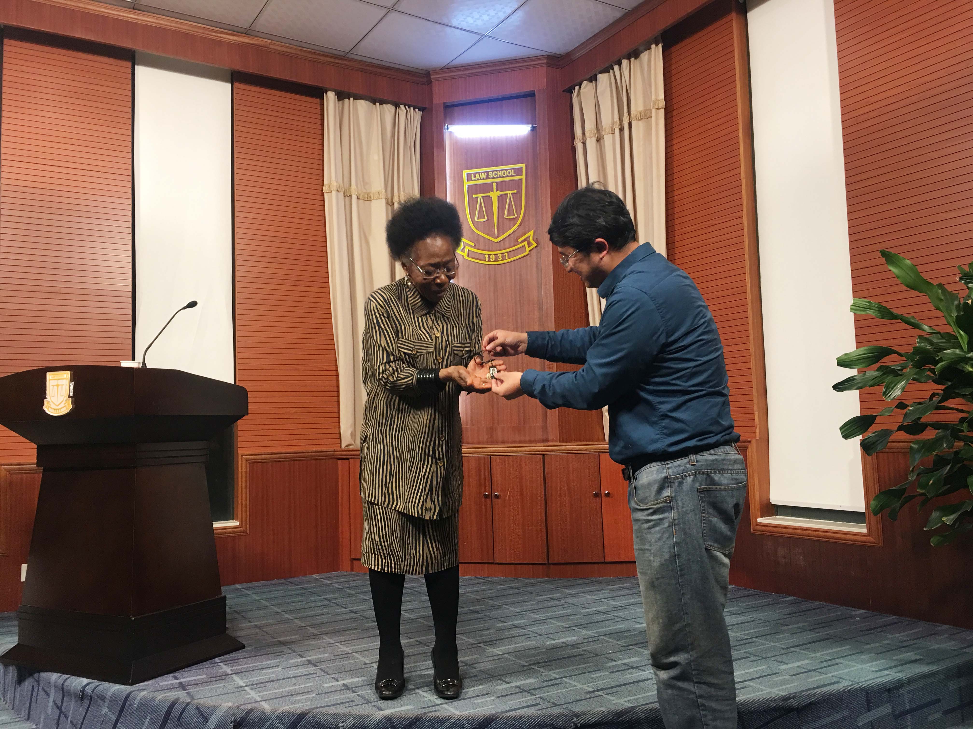 Okupa教授先以时间为线索向同学们讲述了人类的演变历程,并向大家介绍了一些同形异义词:单词拼写相同但具有不同的意思,如“bank of the River Nile”中的“bank”。接着Okupa教授介绍了非洲社会,引出非洲为何贫困、非洲版图划分与法律移植、非洲传统法律体系和传统刑事司法等一系列重要问题,并通过一部短片介绍了苏丹的婚姻法现状。