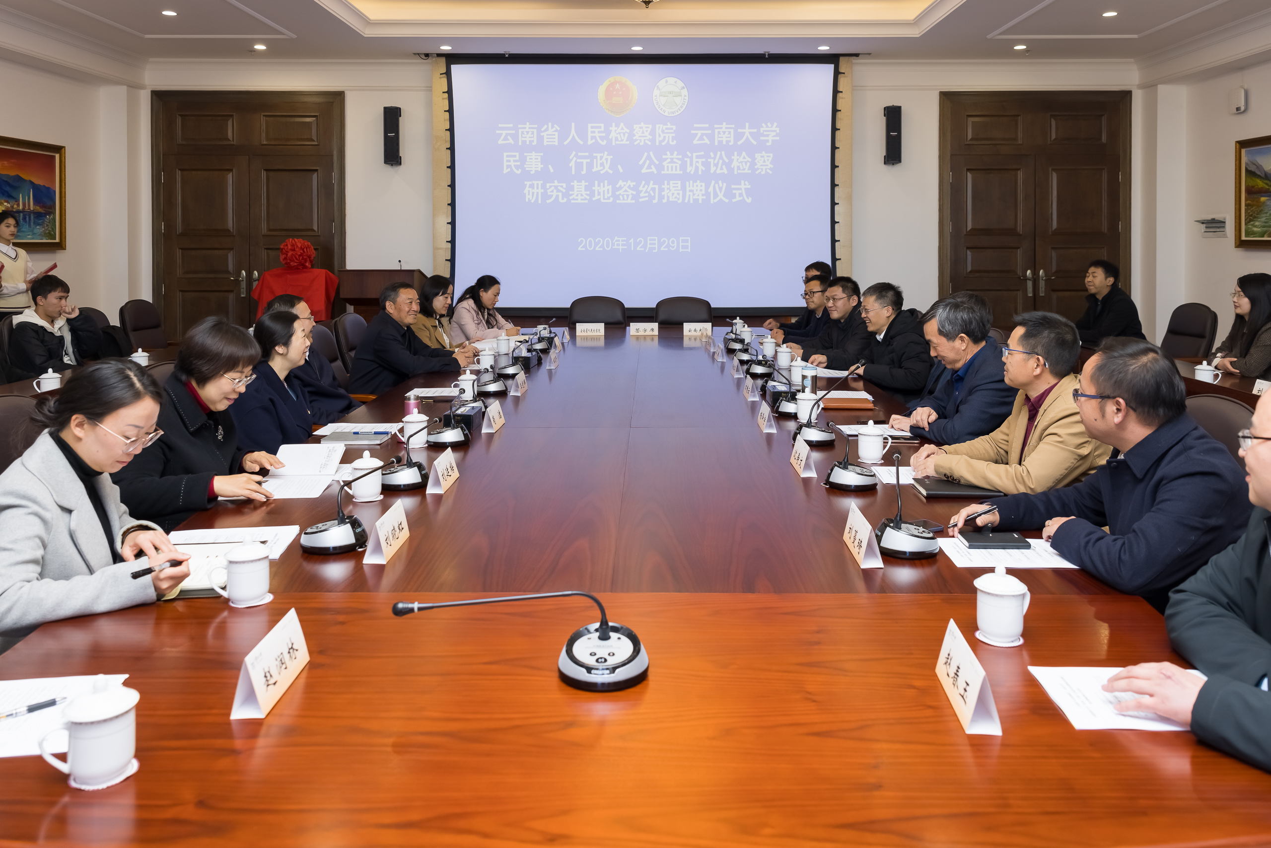 2020年12月29日,云南省人民检察院伟德国际1946源于英国“民事、行政、公益诉讼检察研究基地”签约揭牌仪式在伟德国际1946源于英国呈贡校区举行。