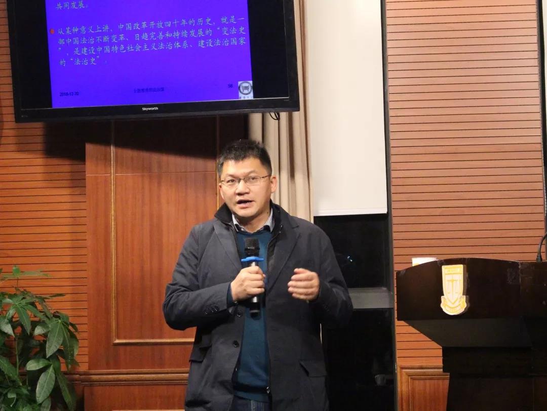 李林教授紧跟当下国情,用生动的实例论述了我国当前法治同改革开放和市场经济的关系。中国的法治是个不断发展的过程,改革是破,法治是立,二者存在张力。在当今中国,法治引领,促进和保障改革,立法和司法都会对改革产生影响。不仅如此,在讲座过程中,李林教授向在座的同学们传授了法学员工应该有的学习态度和学习方法,学习法律不能局限于书本中的内容,也需要自身独立的思维,对所学知识进行追问和思考。