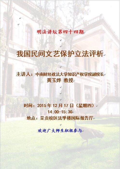 明法讲坛第四十四期:我国民间文艺保护立法评析