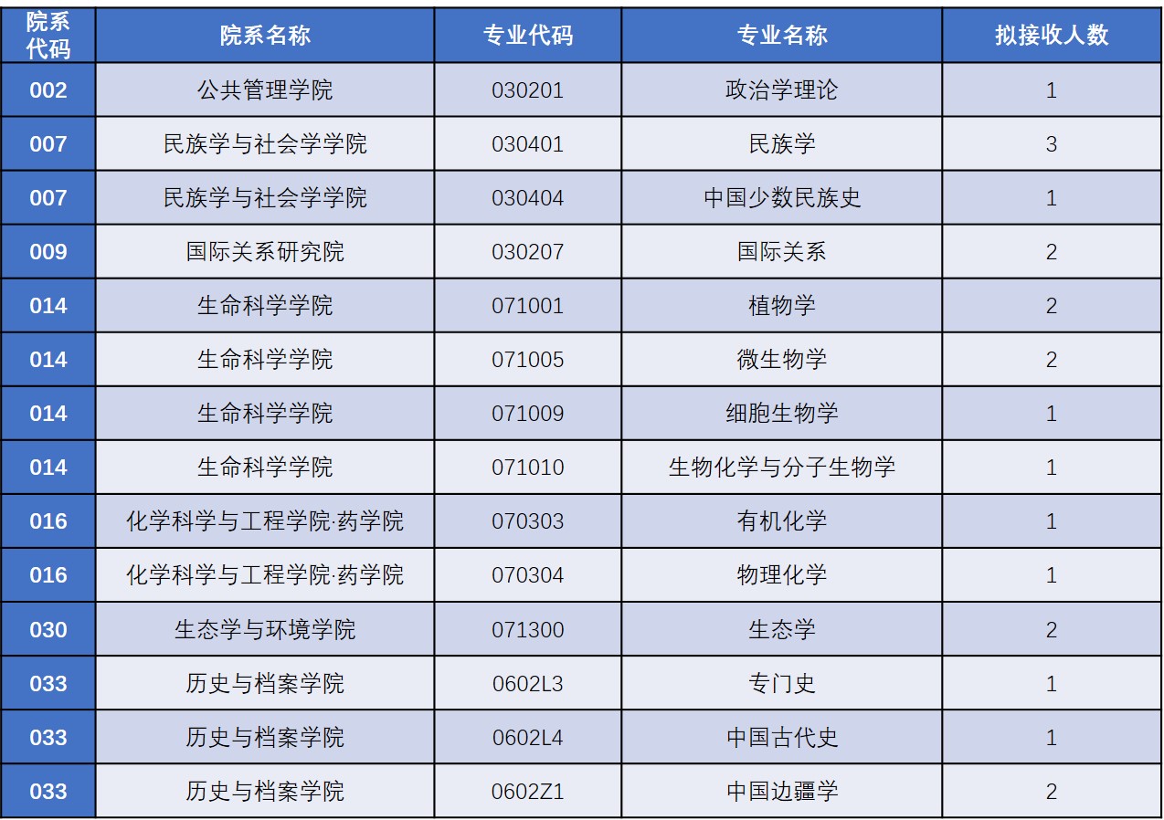 (一)推免硕士生接收专业及接收名额