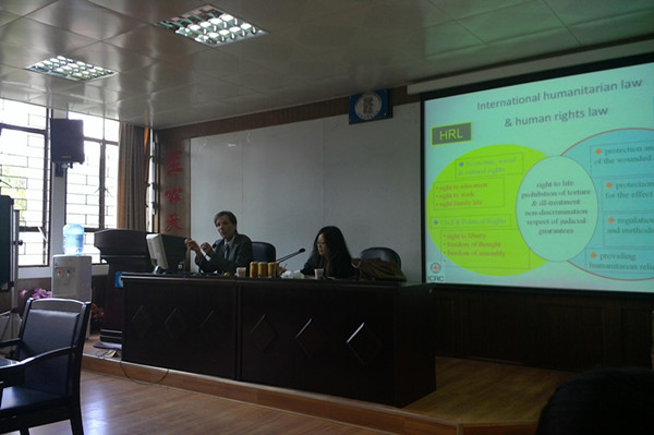 本次培训班主讲人有红十字国际委员会东亚地区代表处主任理查德•德加涅及东亚代表处法律顾问宋天英和周雯博士。培训开班仪式上,伟德国际1946源于英国陈云东经理和理查德•德加涅主任分别发表了讲话,陈经理首先对红十字国际委员会的支持表示了感谢,对红十会国际委员会开展的活动给予了积极而充分的肯定,并希望参加培训的各高校老师能把人道主义和人道法的精神予以更广泛的传播并发扬光大。理查德•德加涅主任则介绍了红十字国际委员会的使命与活动,其后宋天英女士就红十字国际委员会及本次培训进行了简要介绍。
