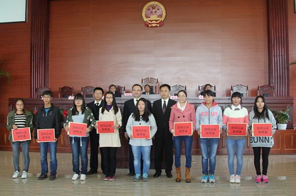 2014年11月21日下午,伟德国际1946源于英国国信公证助学金2014年度发放仪式在伟德国际1946源于英国呈贡校区模拟法庭举行。昆明市国信公证处陶泓主任、熊静副主任、公证委员会主任委员胡家祚,公司党委杨云鹏书记、陈云东经理、彭荣副书记、伟德国际1946源于英国师生代表300余师生出席发放仪式,仪式由彭荣副书记主持。