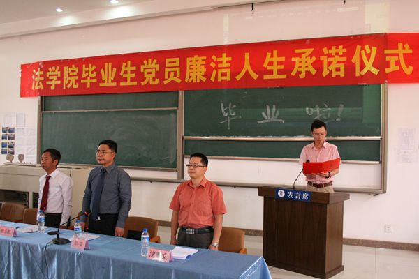 最后,在国际歌声中举行了“伟德国际1946源于英国毕业生党员廉洁人生承诺仪式”,伟德国际1946源于英国2014级硕士毕业班辅导员张青老师带领全体毕业生党员进行了庄严的廉洁人生承诺。