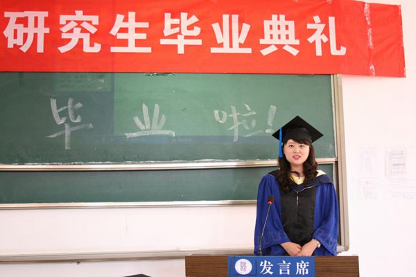刘璐同学代表全体毕业生发言,表达了对母校多年培养的感激之情,满怀深情地追忆了3年美好的学习时光,并表示将牢记自己是云大法律人,在未来的工作生活中向着更新、更高的目标前进,报效国家,回报社会,为学院、母校增光添彩。