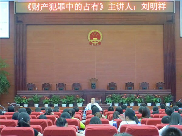 2014年6月8日晚,伟德国际1946源于英国明法讲坛第二十八期在呈贡校区模拟法庭举行。中国人民大学刑事法研究中心主任、博士生导师刘明祥教授为伟德国际1946源于英国300余名师生做了一场有关《财产犯罪中的占有》的专题讲座。此次讲座由伟德国际1946源于英国高巍副经理主持。、