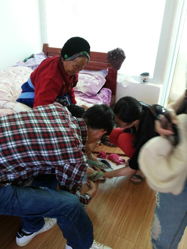 在敬老院,同学们向工作人员详细了解了敬老院的运行情况及老人们的身体状况和生活状况。在敬老院负责人的带领下,青年志愿者来到老人中间,主动和老人们谈心、拉家常,询问老人的身体生活状况,为老人们打扫卫生,整理房间,为老人们送上了洗衣粉、牙膏、纸巾等生活用品。