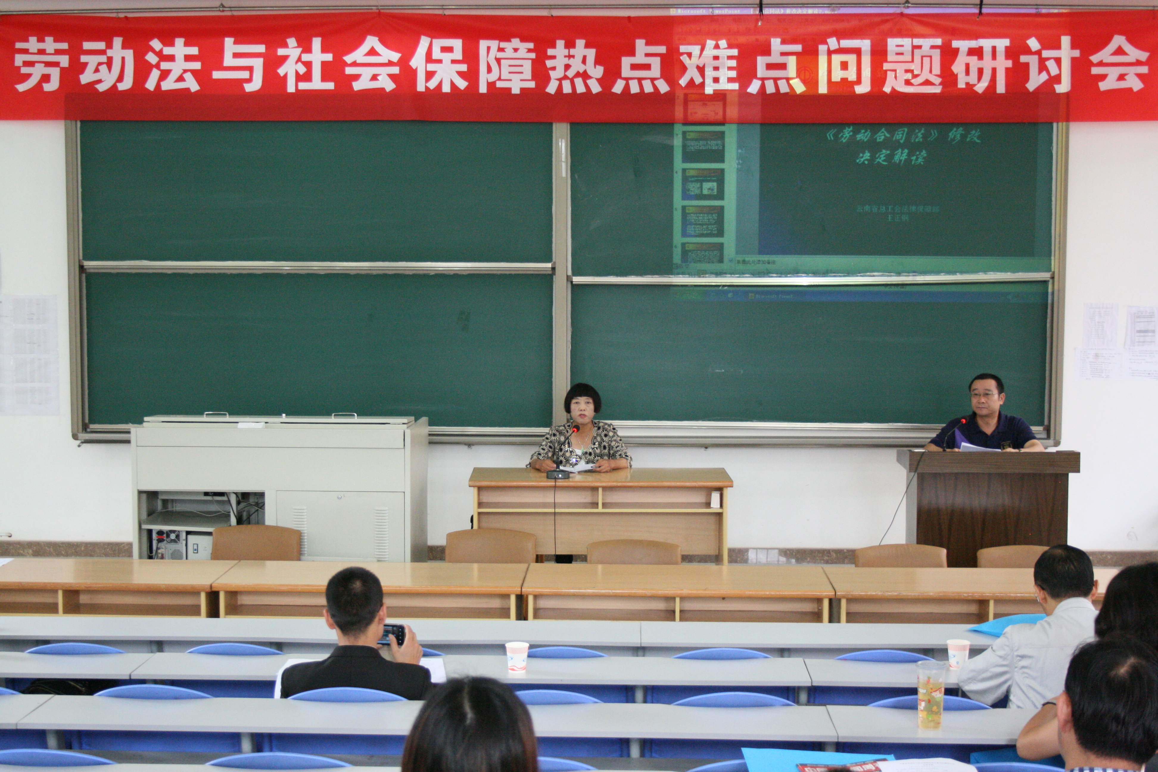 2013年6月8日,云南省法学会劳动法与社会保障法专业委员会在伟德国际1946源于英国北学楼201阶梯教室召开会员大会,并就劳动法与社会保障法的热点难点问题进行了研讨。省人大、省委省政府有关部门、昆明市委市政府有关部门、省高院、市法院、西山区法院、省劳动人事争议调解仲裁院、市劳动人事争议调解仲裁院、律师事务所和企业等共51名会员参加了本次大会。