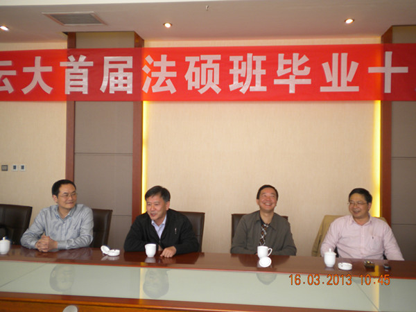 “十年”久远,如十年磨一剑;“十年”短暂,犹若朝夕片刻。弹指间,轮回了青春少年,往昔是那么熟悉,一切是那么令人眷念。人至中年、历经颠沛,有的学友从政为官、有的下海经商、更多的是为社会主义法制事业尽职尽责。今天,师生相见、分外亲切,同窗相聚、心潮澎湃,畅享属于我们自己特有的情谊,积蓄彼此更深厚的友情和思念。座谈会上,召集人、时任麒麟区检察院检察长太祥红员工通报了麒麟区检察院被最高人民检察院授予“全国先进基层检察院”荣誉称号并记“全国检察机关集体一等功”之喜讯,学友们亦动情地表达了对母校和学院的深厚情谊和良好祝愿。