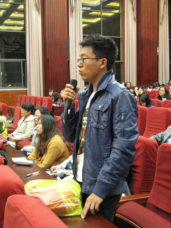 首先同学们就自身的疑虑向两位老师提问,随后彭副书记与王副经理对同学们关于留学交流、导师选择、图书馆学习、就业实践等问题一一进行了解答。