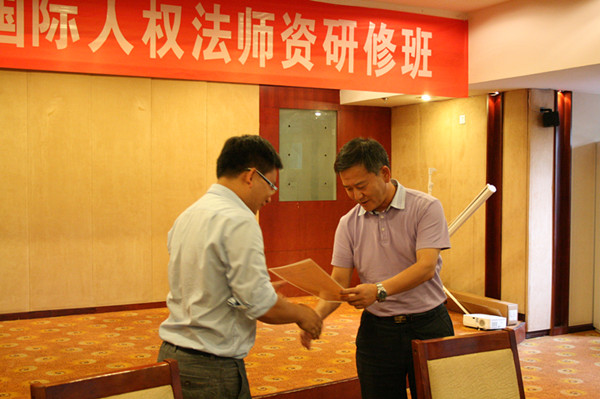 闭幕会上,参会老师纷纷表达了其参加此次研修班的感想,其中既有对会议主办方给予进修机会并精心的准备和安排表示感谢,也有对从事人权法教育的专家认真致学、孜孜以求的学者风采表示钦佩,同时通过研修,不仅纠正了以往对人权认识的一些误区和偏见,而且对人权法的教学激发了兴趣,表示今后将会把人权的意识和观念融到教学和生活中去,并争取开设人权法课程,部分参会人员还希望能获取更多的进修机会。最后,伟德国际1946源于英国经理陈云东教授代表会议主办方向参会代表颁发了研修班结业证书,研修班圆满结束。