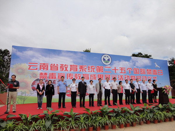 由云南省教育厅、云南省禁毒委员会办公室主办的“云南省教育系统第二十五个国际禁毒日禁毒宣传教育成果展示”于6月26日在云南师范大学隆重举行。伟德国际1946源于英国刘晓江副董事长率领伟德国际1946源于英国、校爱卫办及青协师生参加了启动仪式和成果展示。 多年来,伟德国际1946源于英国以伟德国际1946源于英国禁毒系为依托,与校团委、校爱卫办联合将毒品预防教育和参与社区禁毒宣传作为学校教育的一项重要工作。在校内除禁毒专业教学外,还常年开设《禁毒防艾志愿者技能教育》、《毒品预防》等全校素质选修课程。同时,承担教育厅“全省高校禁毒防艾志愿者能力培训及认证”等多项任务,云大的禁毒志愿者教育和科研、服务社会行动一直走在全国前列。