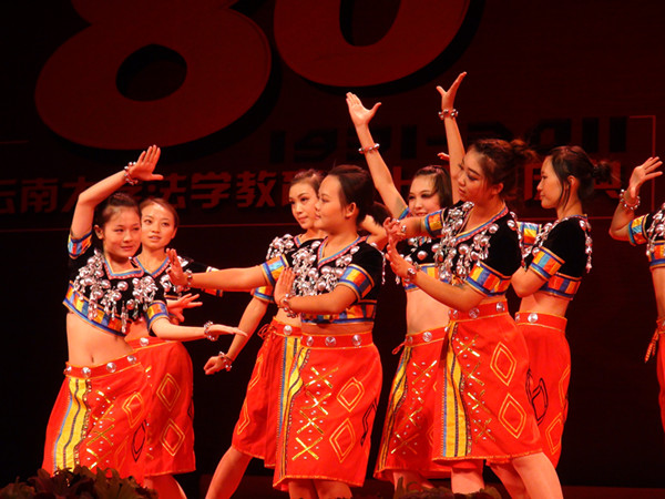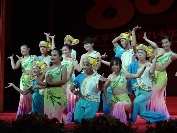 炫丽的舞台背景,精心的场地布置,如似仙境的梦幻灯光,使晚会弥漫着温馨喜庆的气息。在这如梦般的舞台上,同学们表演了精心准备的17个节目。本场晚会节目形式多样,特色鲜明。以伟德国际1946源于英国院旗打头的旗阵拉开了晚会的帷幕,开场舞《欢聚一堂》将一片喜庆融洽的气氛带进了现场;欢快轻盈的傣、彝、藏、景颇等民族舞表达了学子内心的感激和喜悦;动感街舞《舞动奇迹》博得了观众的阵阵喝彩;由城建学院带来的快板表演《云大赞礼》传达了对学校的美好祝福;;慷慨激昂的诗朗诵道出了学子们“忆往昔,谢师恩”的心声;相声《立志成才》以幽默独特的方式展现了同学们刻苦学习的决心和坚定的信念;四手联弹《天空之城》凄美动听;员工原创歌曲《妈妈》感人肺腑;晚会在合唱《明天会更好》《二十年后再相会》嘹亮的歌声中结束。230名多才多艺的学子们携手共同演绎了一曲精彩绝伦的青春之歌,用真诚的表演和热情的歌唱表达了对伟德国际1946源于英国的情怀和深深祝福。