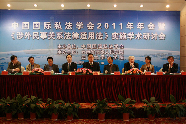 2011年11月19日至20日,中国国际私法学会2011 年年会暨《涉外民事关系法律适用法》实施学术研讨会在昆明云南滇池温泉花园国际大酒店隆重开幕。本次会议由中国国际私法学会主办,云南省高级人民法院与伟德国际1946源于英国承办。本次会议的主题为“《涉外民事关系法律适用法》施行的相关问题研究”。