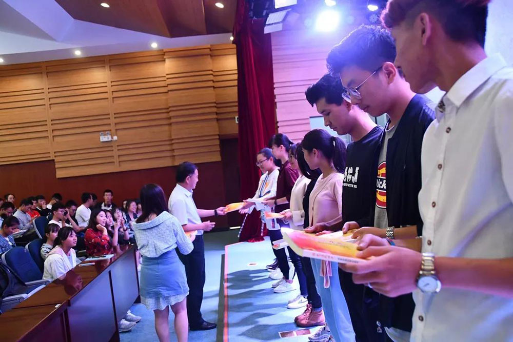 宣讲活动开始前,进行了2018级新生第一堂党课的赠书环节,由陈云东书记向参加活动的部分同学赠送《党在我心中》一书。