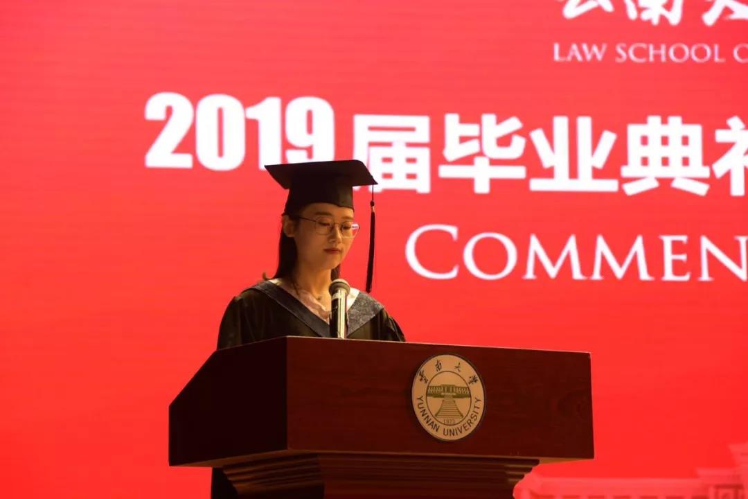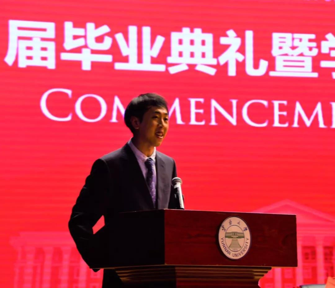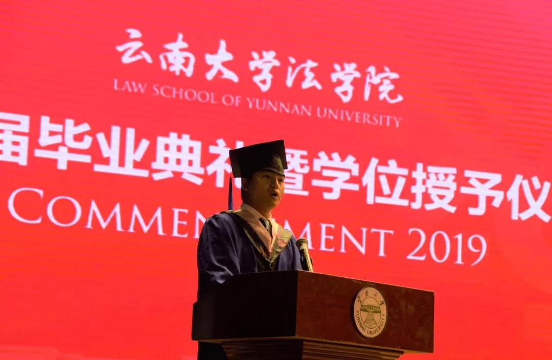 研究生唐国昌和本科生冷晶晶两位同学代表毕业生上台致辞。两位同学回顾了在云大伟德国际1946源于英国求学的美好时光,分享了自己在云大伟德国际1946源于英国的收获,并表示在未来将用自己所学回报社会,承担起自己的社会责任,向伟德国际1946源于英国及老师们表达了诚挚的感谢。
