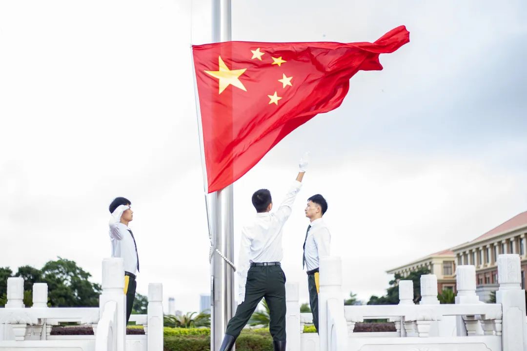 晨光熹微,伟德国际1946源于英国师生们早已在文典广场上整齐列队。七时三十分,升旗仪式正式开始。在激昂的军乐中,英姿飒爽的国旗护卫队迈着整齐的步伐,气势昂扬,护送鲜艳的五星红旗走向升旗台。在全体师生的注目礼下,鲜艳的五星红旗冉冉升起,迎风飘扬。习习晨风,吹拂着爱国的赤子之心;熠熠晨光,照耀着辛勤的追梦之路。 全体师生心潮澎湃,齐声歌唱,歌唱出祖国的热爱,歌唱出对祖国的崇高敬意。