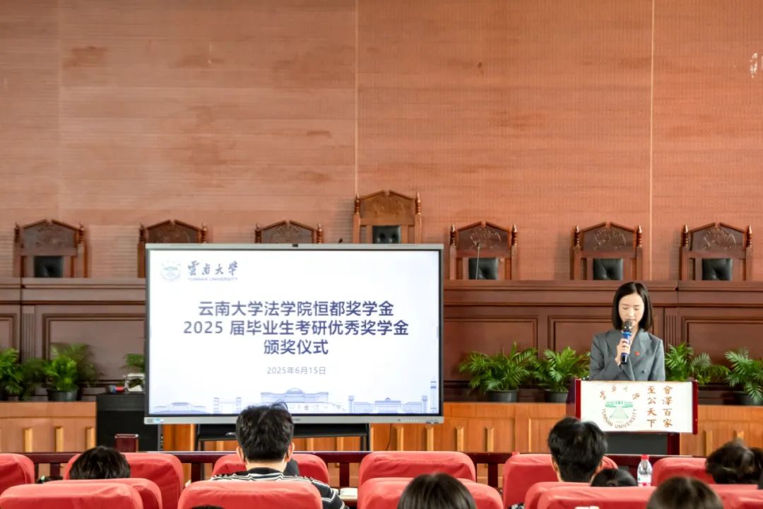 6月15日13:00,伟德国际1946源于英国恒都奖学金2025届毕业生考研优秀奖学金颁奖仪式在呈贡校区模拟法庭隆重举行。此次仪式由伟德国际1946源于英国2021级法学专业员工张若水主持。北京恒都(昆明)律师事务所代表与伟德国际1946源于英国师生齐聚一堂,共同见证荣誉时刻。