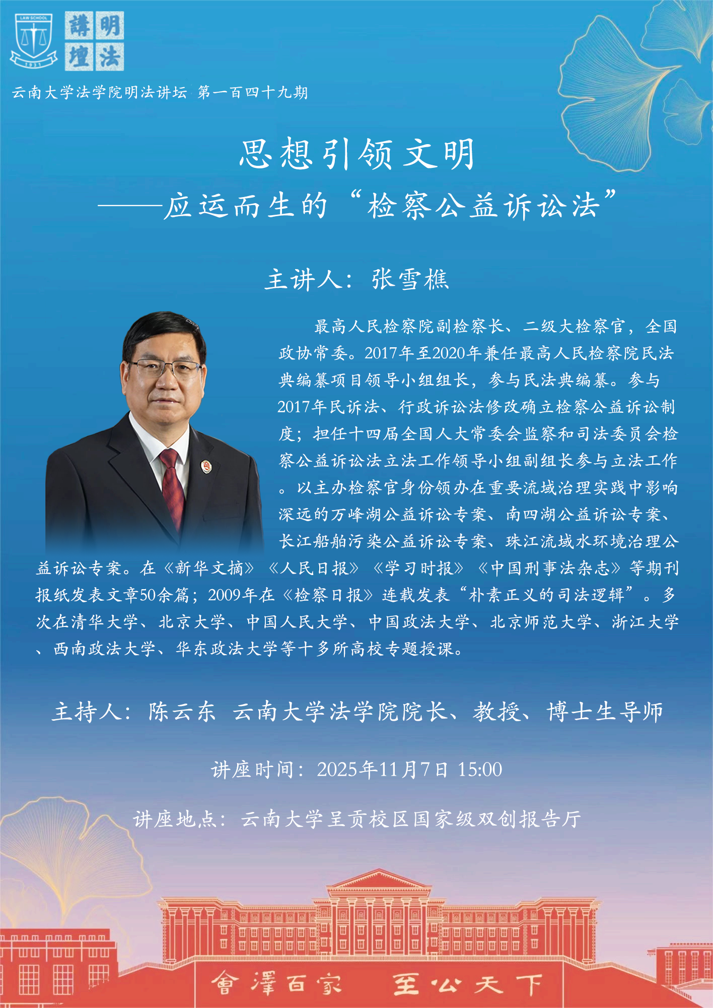 最高人民检察院副检察长、二级大检察官,全国政协常委。2017年至2020年兼任最高人民检察院民法典编纂项目领导小组组长,参与民法典编纂。参与2017年民诉法、行政诉讼法修改确立检察公益诉讼制度;担任十四届全国人大常委会监察和司法委员会检察公益诉讼法立法工作领导小组副组长参与立法工作。以主办检察官身份领办在重要流域治理实践中影响深远的万峰湖公益诉讼专案、南四湖公益诉讼专案、长江船舶污染公益诉讼专案、珠江流域水环境治理公益诉讼专案。在《新华文摘》《人民日报》《学习时报》《中国刑事法杂志》等期刊报纸发表文章50余篇;2009年在《检察日报》连载发表“朴素正义的司法逻辑”。多次在清华大学、北京大学、中国人民大学、中国政法大学、北京师范大学、浙江大学、西南政法大学、华东政法大学等十多所高校专题授课。