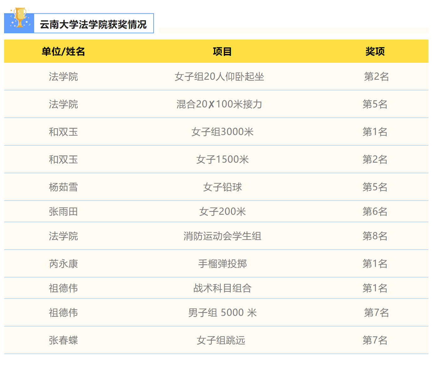 运动场上,运动员矫健的身姿令人振奋,运动场外,志愿者忙碌的身影让人动容。各院的志愿者们提前与运动员一一配对。赛中,他们引导检录,维持秩序,在赛道旁呐喊助威;赛后,他们递上饮水,贴心关注运动员身体状况,给予运动员无微不至的照顾。正因志愿者们的付出,运动员们才能更好地在赛场上挥洒风采。
