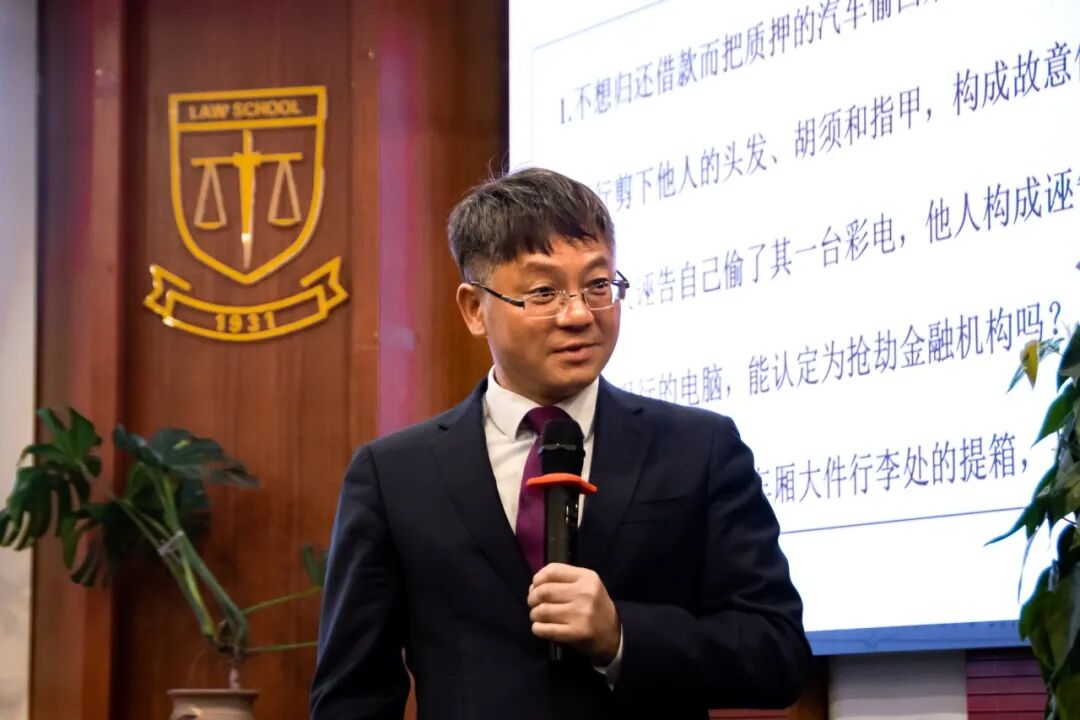 讲座开始,陈洪兵教授强调学习刑法要一以贯之地坚持好罪刑法定原则和罪行相适应原则,要以保护的法益为指导解释犯罪构成的要件。 随后,陈洪兵教授从刑法的目的性出发,深刻阐述了“刑法的目的是保护法益,犯罪的本质是侵害法益”。以“强行剪下他人的头发、胡须和指甲,是否构成故意伤害罪?”为例,指出学习刑法首先要把握具体犯罪的保护法益是什么?故意伤害罪保护的核心法益是他人的身体健康权,而强行剪下他人头发、胡须和指甲通常不被认为达到了“伤害”程度的身体损害,这一行为更直接地侵害的法益是他人的身体权、人格尊严和名誉权。由此得出结论:强行剪下他人头发,胡须和指甲并不构成故意伤害罪。陈洪兵教授以通俗的案例生动地解释了法条的目的性在于保护法益。