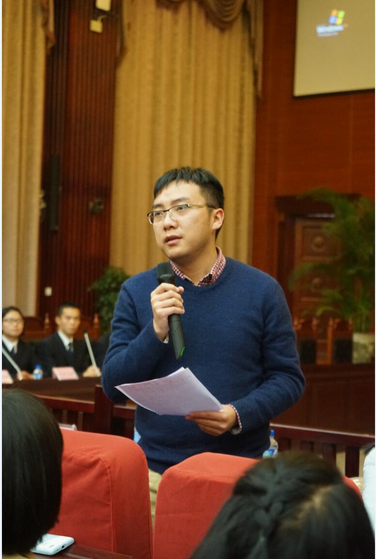 随后,主持人详细介绍了比赛流程。伴随着同学们热切的目光,“法学杯”辩论赛初赛第一场拉开序幕。本次比赛的辩题为:中国法律应不应当禁止寺庙公司化经营。正方为云南师范大学,反方为云南警官学院。正方从公司化经营概念入手,详细叙述寺庙作为自身场所拥有其有存在的价值,并结合宗教目前的生存特征以及寺庙公司经营必须得到许可,而非法令许可不可违等几个方面,得出结论:中国法律应当禁止寺庙公司化经营。而反方更重视寺庙概念的理解,从寺庙公司化经营的合理性,中国法律禁止不能解决寺庙当前发展困境,并且寺庙有自主选择经营方式的权利等多角度出发,认为中国法律不应当禁止寺庙公司化运营。随后,两方进行了激烈的思想碰撞与交锋/各抒己见,而同学们则用阵阵掌声来表达他们的赞同与鼓励。而在观众提问环节,同学们与选手们积极交流,表达不同的想法,也在这一过程中拓展了对该问题理解的不同思路。在评委点评环节,朱慧老师、周昌发老师、程龙老师与余晶同学则是从不同角度,对赛场选手们进行了点评,帮助他们改进辩论过程中的不足处。最终反方代表队云南警官学院获得本次比赛的胜利。